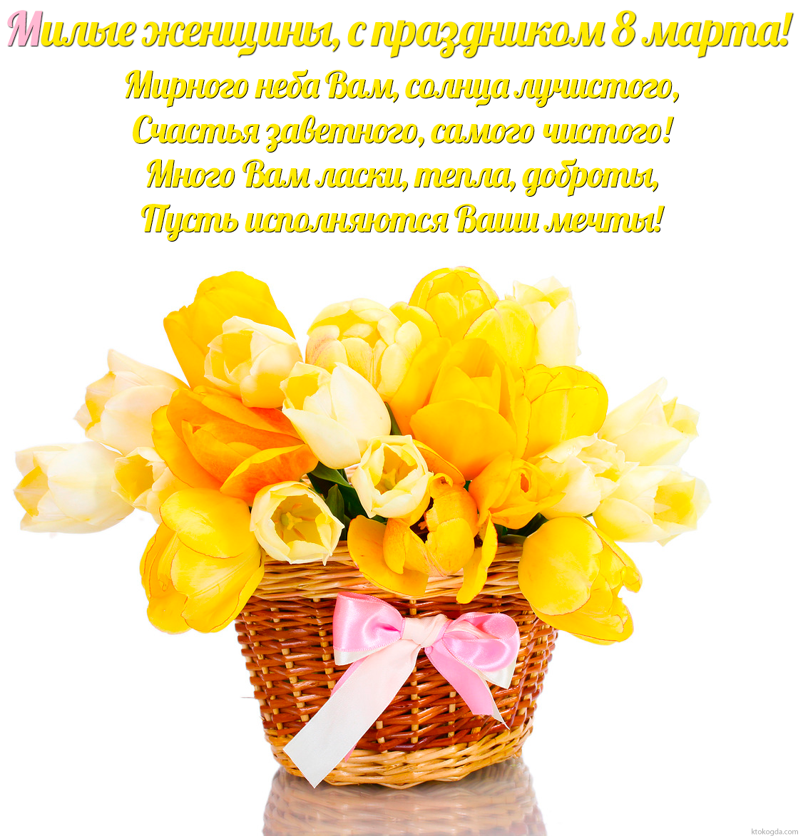 Открытка к 8 марта коллегам с пожеланием, цветы, Мирного неба Вам, солнца лучистого, Счастья заветного, самого чистого! Много Вам ласки, тепла, доброты, Пусть исполняются Ваши мечты!