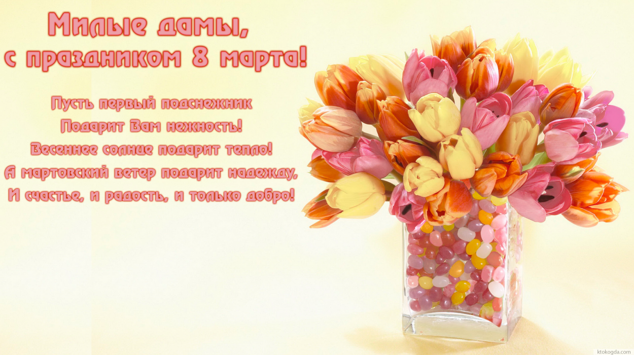 Открытка к 8 марта с стихотворением-пожеланием