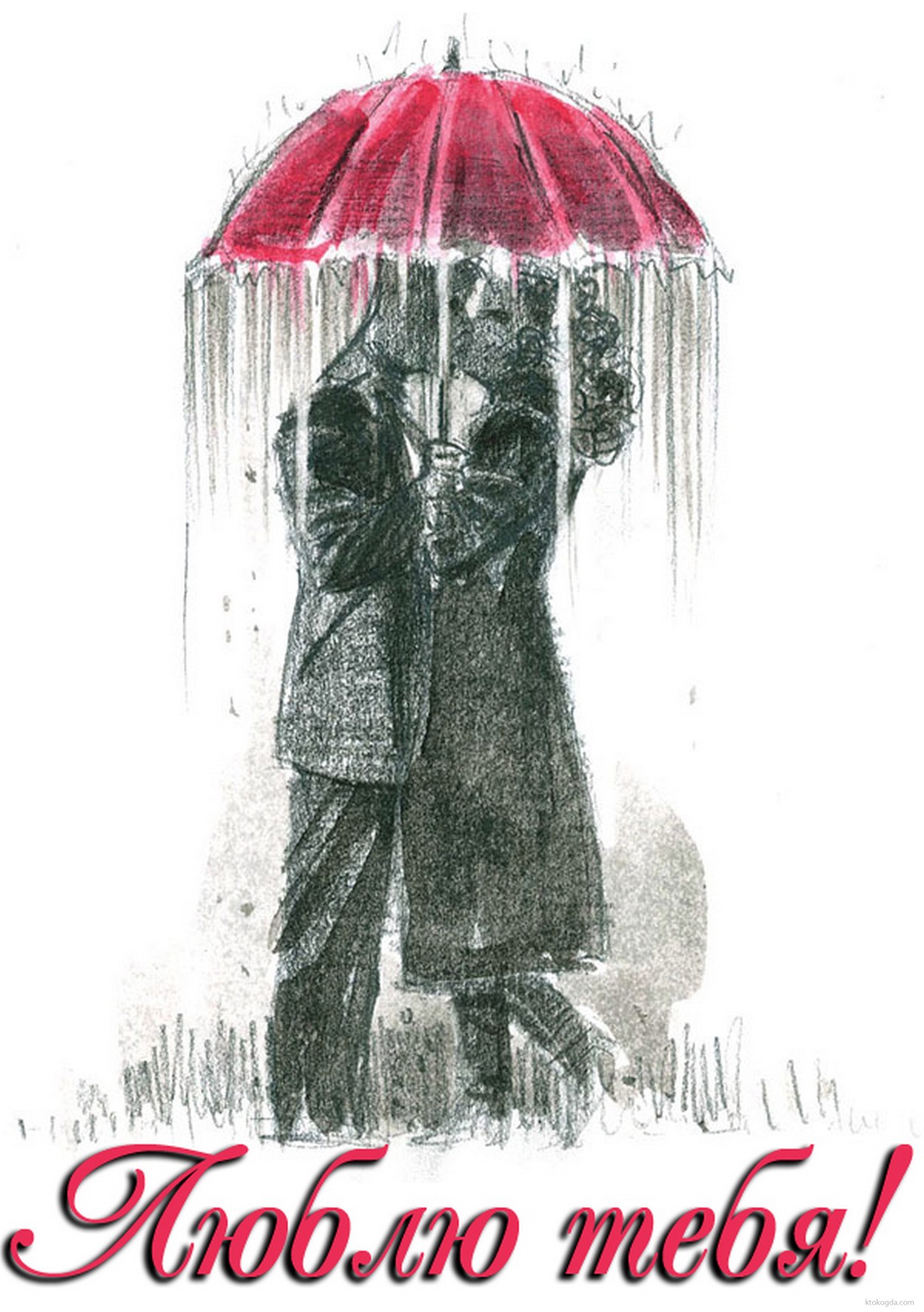 Открытка люблю тебя, пара под зонтом