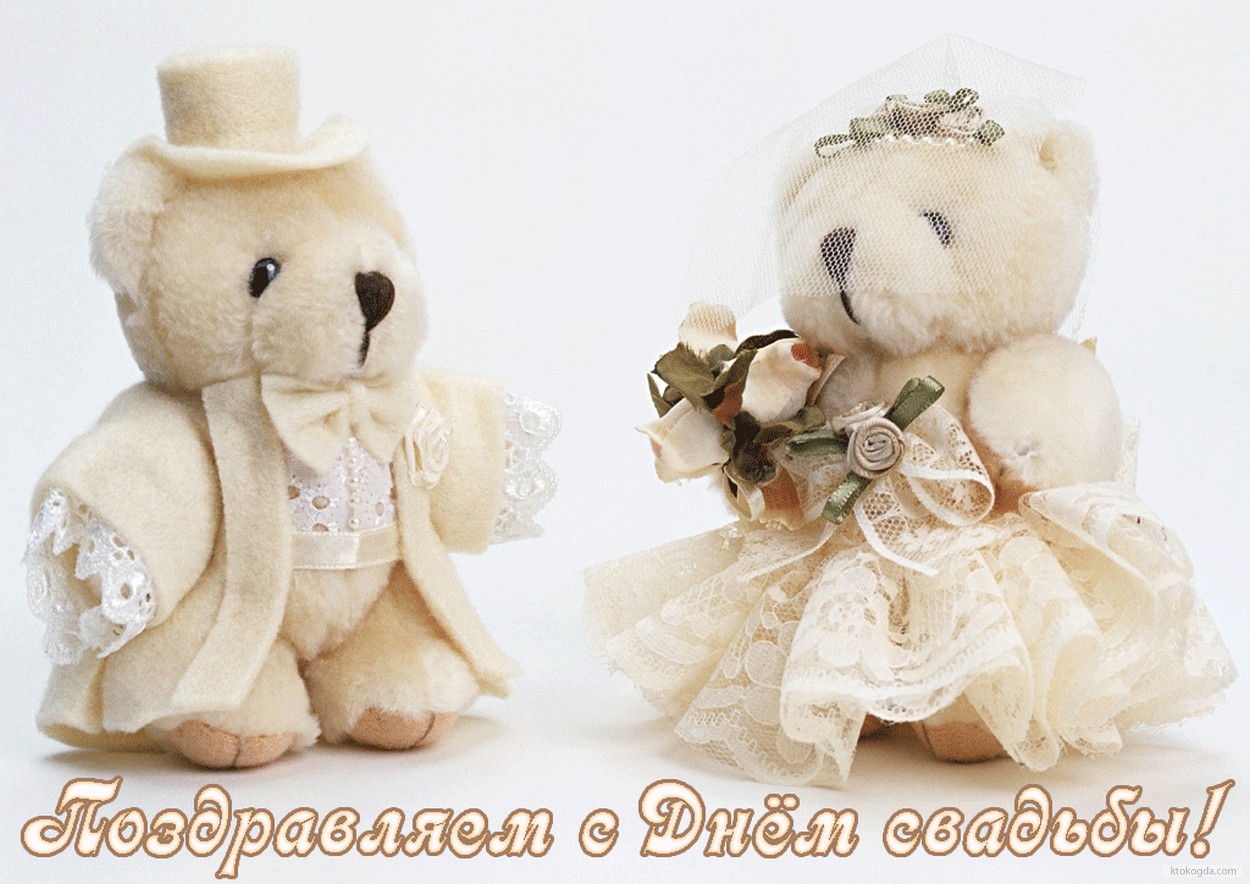 Открытка Поздравляем с Днем свадьбы, мишки, невеста и жених
