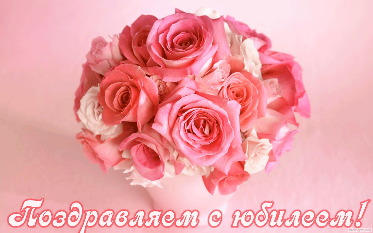 Открытка Поздравляем с юбилеем, букет из розовых цветов в вазе