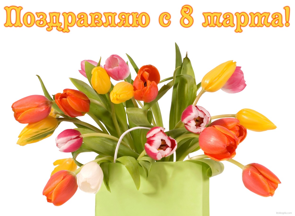 Открытка поздравляю с 8 марта, тюльпаны