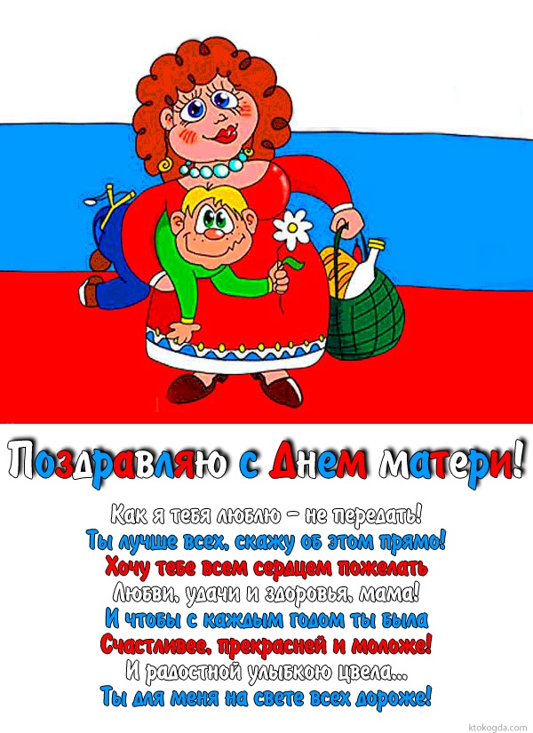 Открытка поздравляю с Днем матери с поздравлением-стихотворением