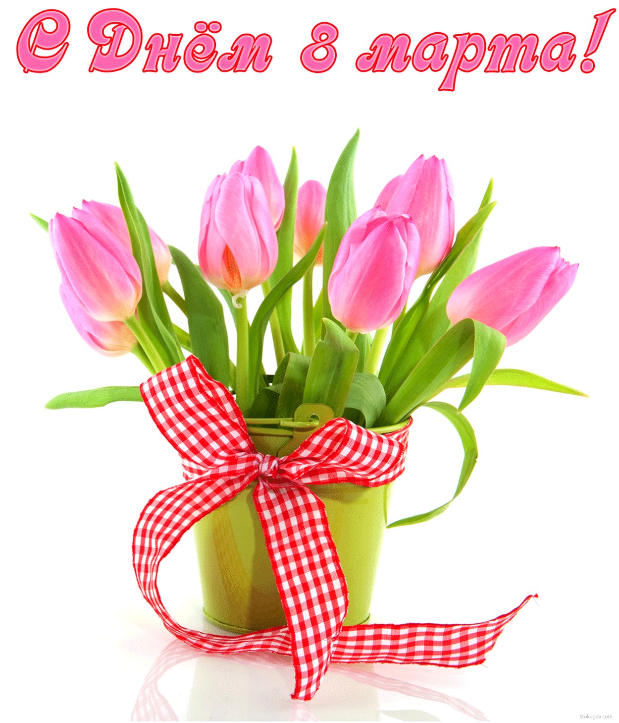 Открытка с Днем 8 марта, букет тюльпанов