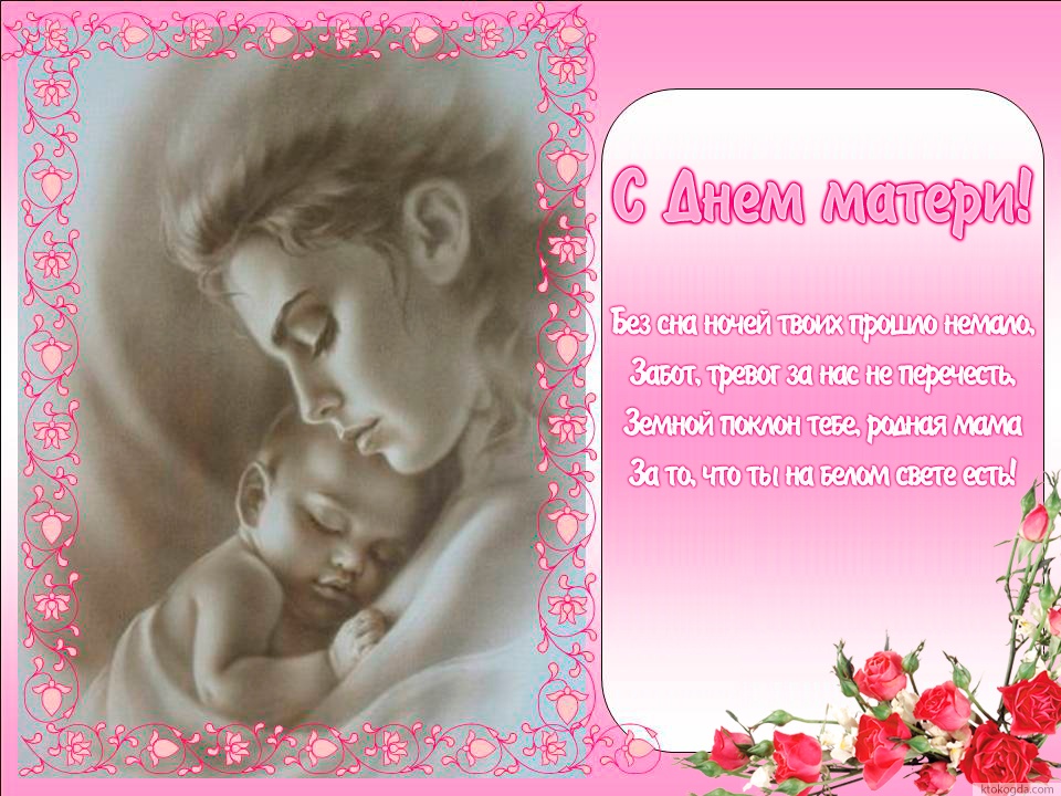 Открытка с Днем матери с поздравлением, мать и ребенок