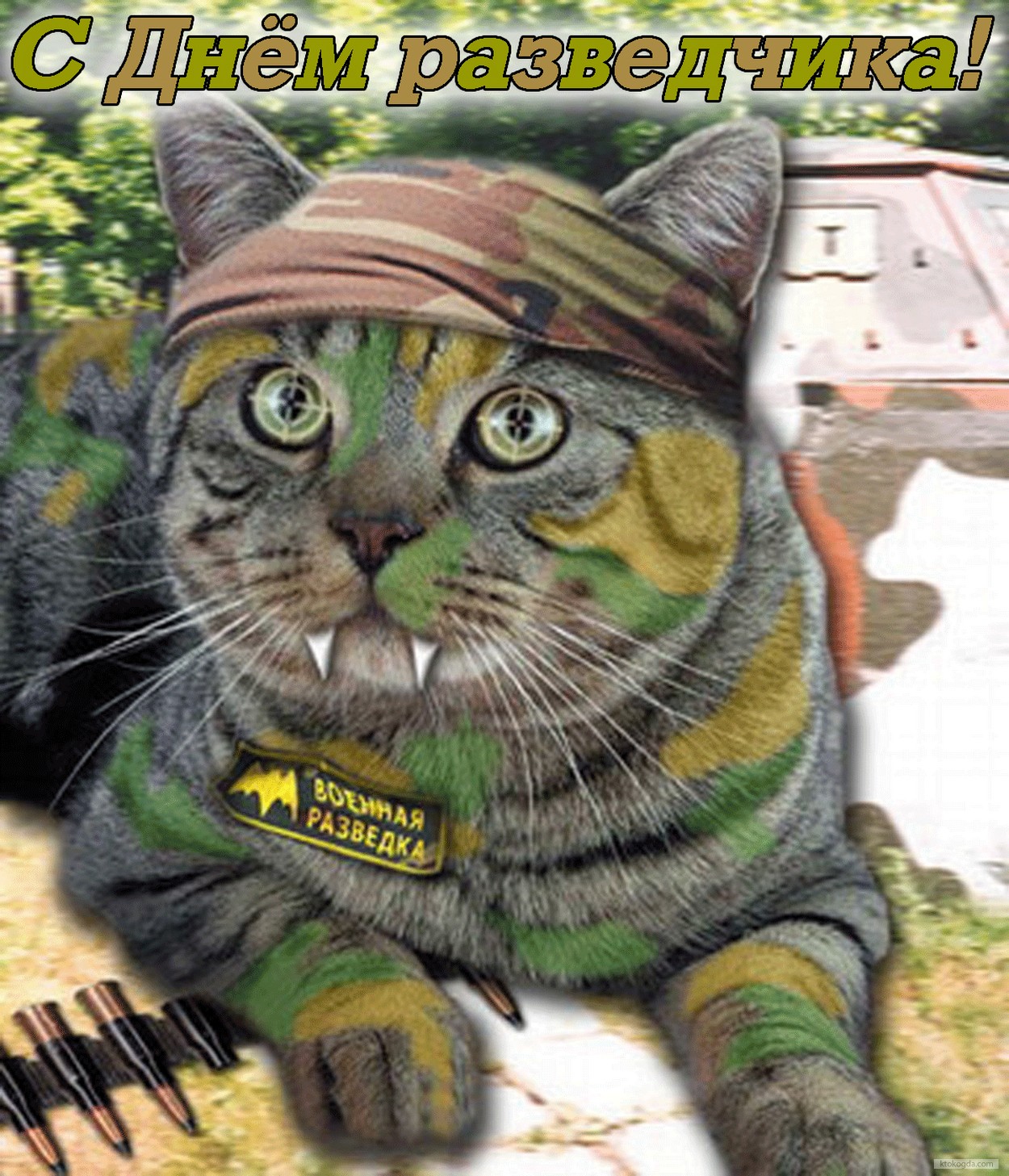 Открытка с Днем разведчика прикольная, кот