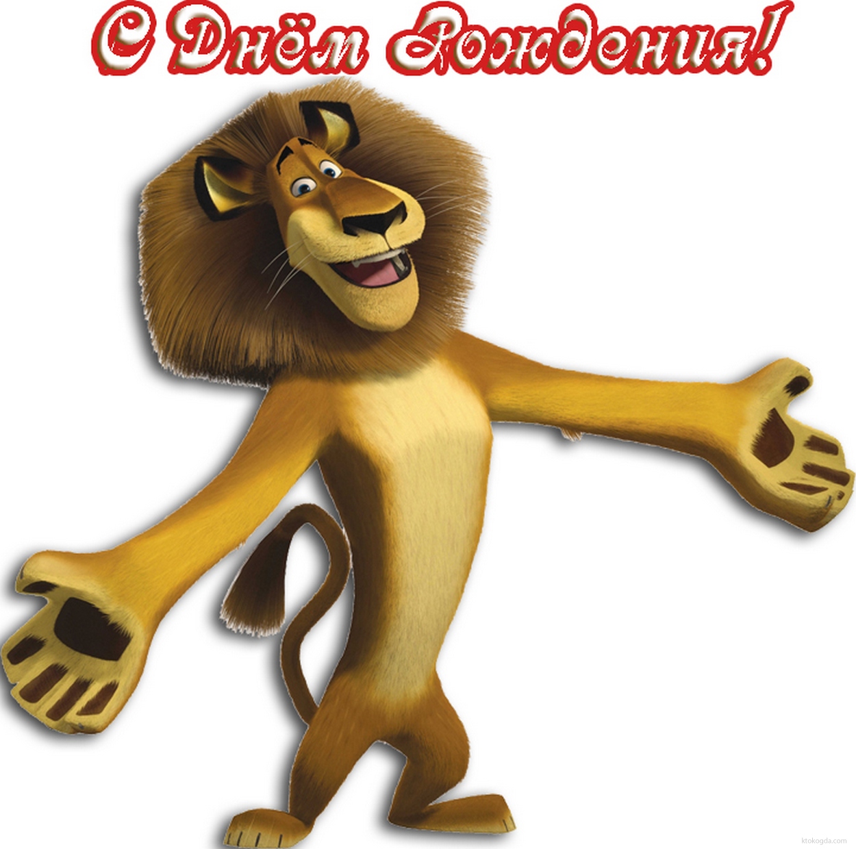 Открытка с Днем Рождения, герои мультфильмов, лев Алекс из Мадагаскара