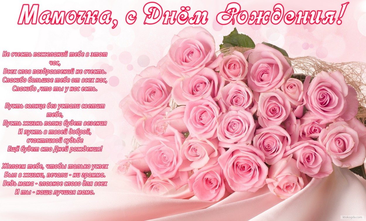 Открытка с Днем рождения маме, цветы, розы, с стихотворением-пожеланием
