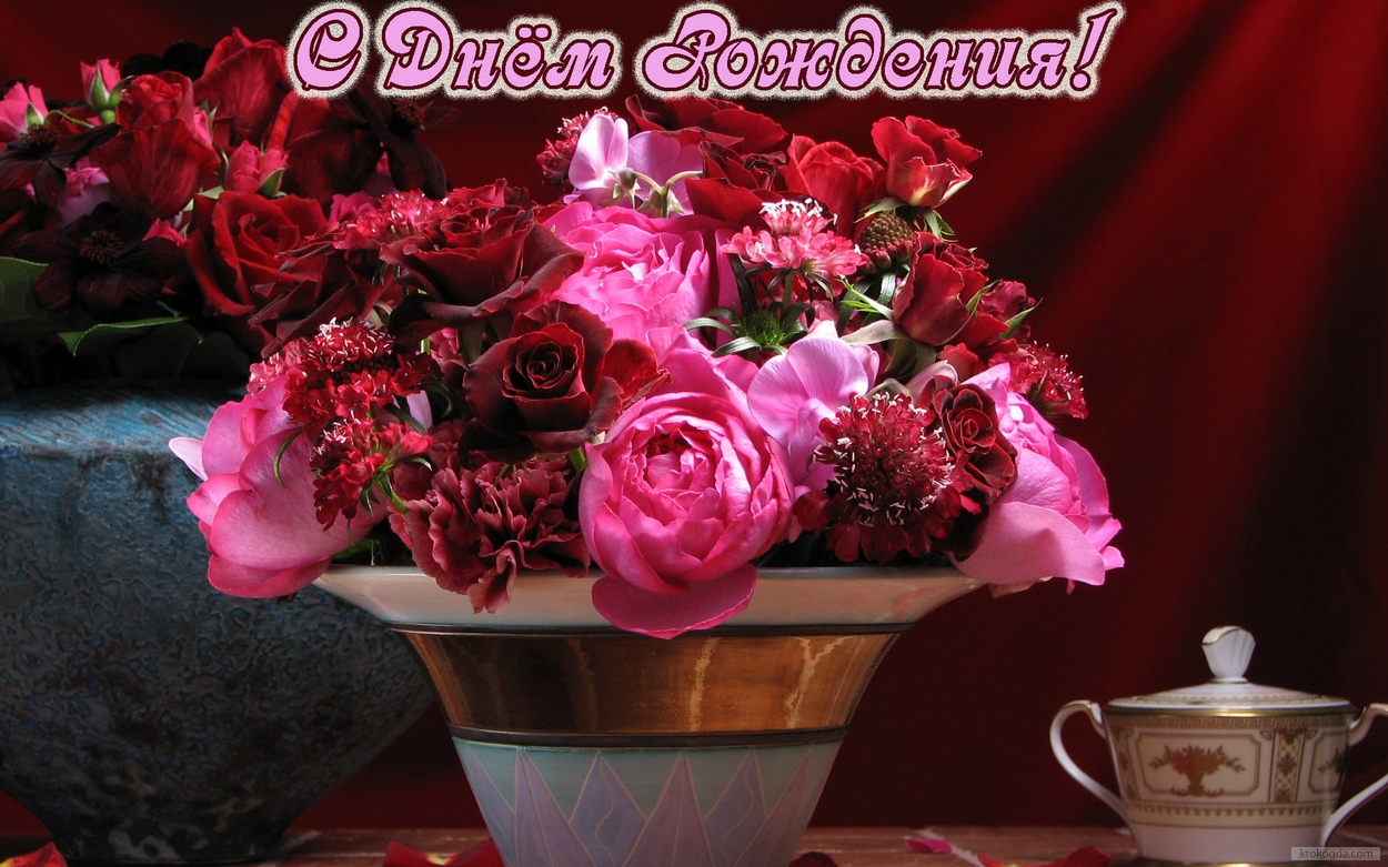 Открытка с Днем Рождения женщине, цветы,красивый букет