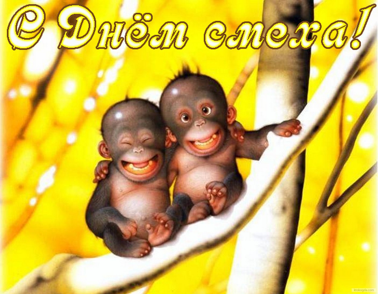 Открытка с Днем смеха, смеющиеся обезьянки