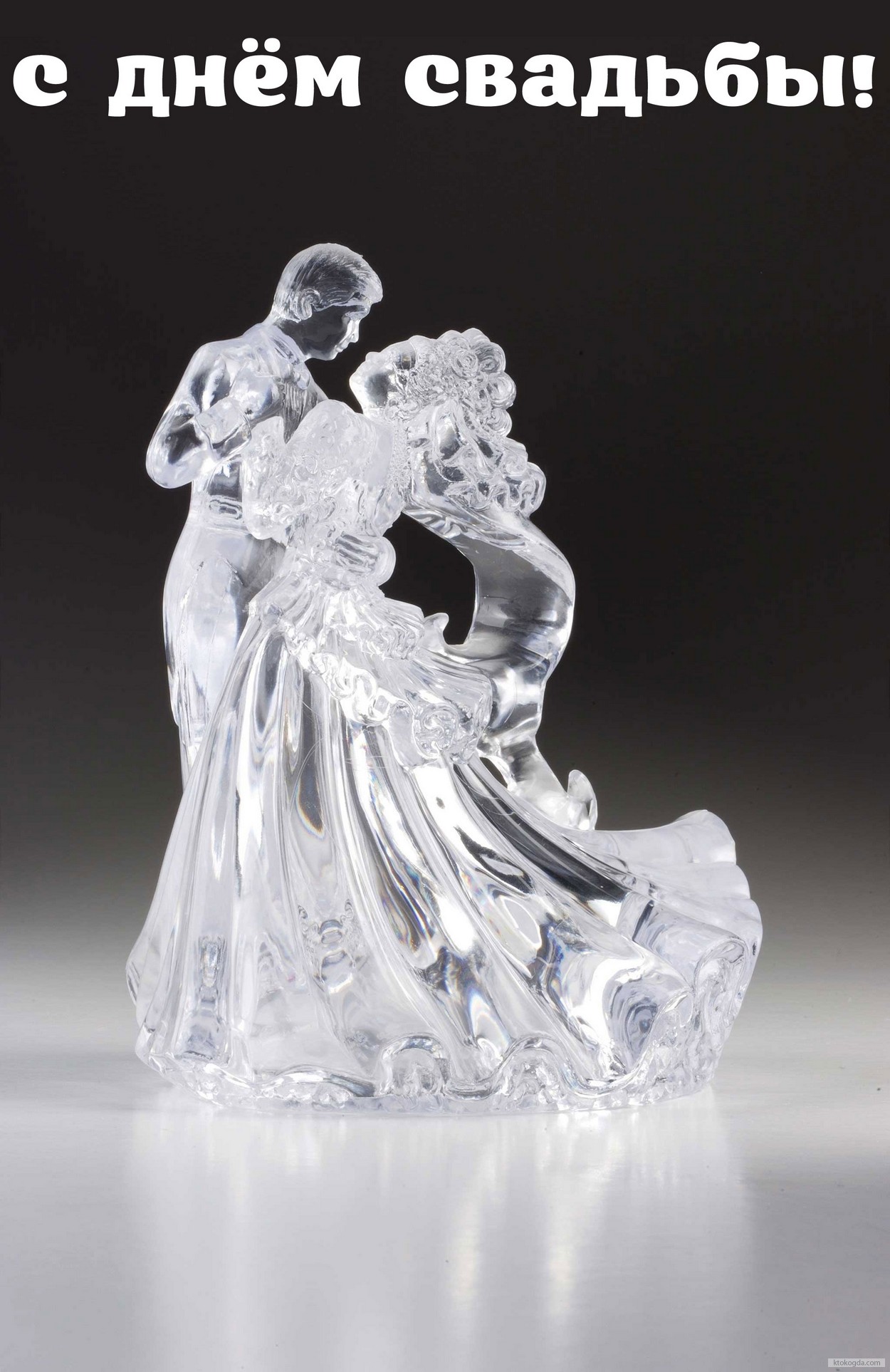 Открытка с Днем свадьбы, хрустальные жених и невеста
