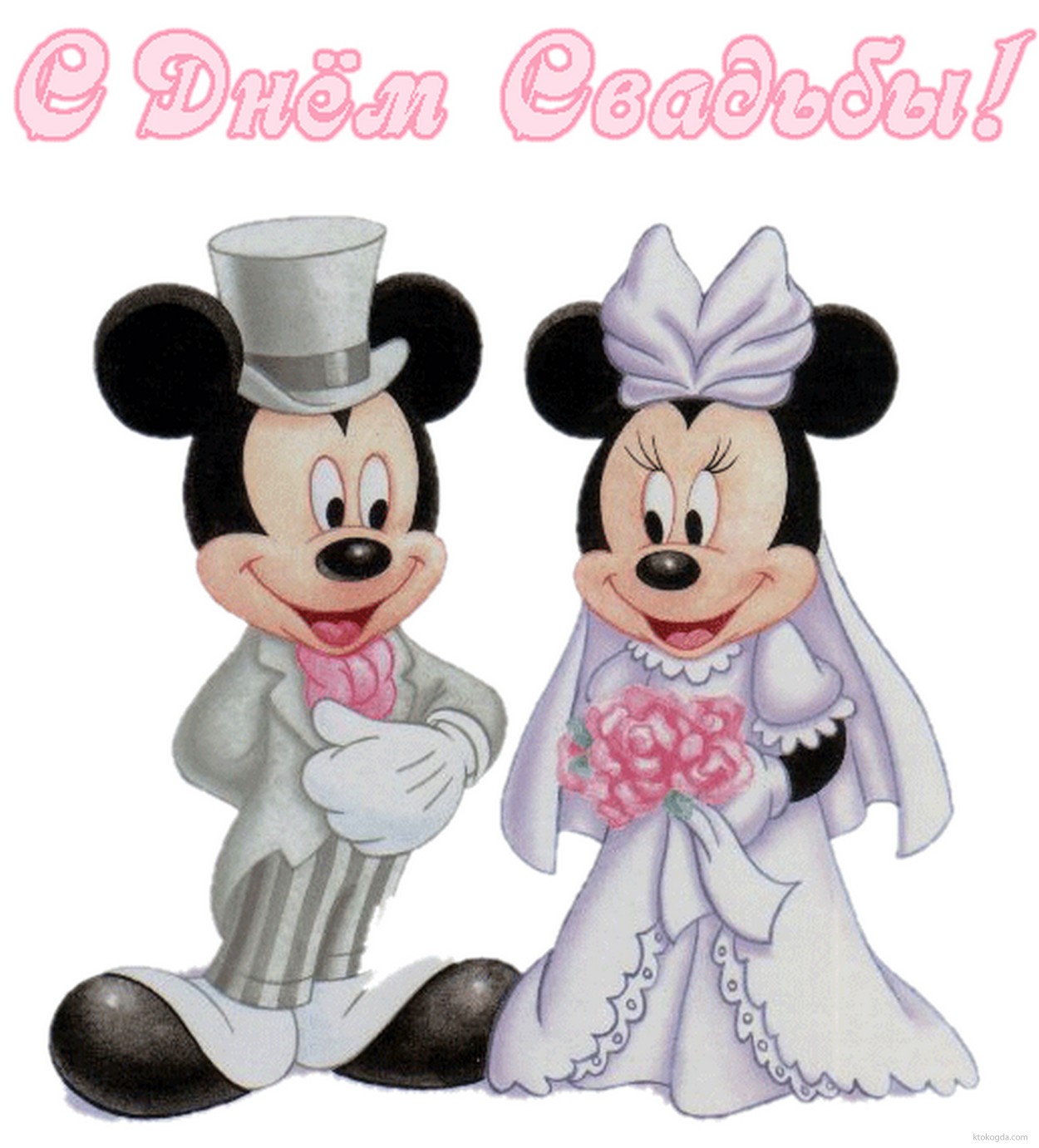 Открытка с Днем свадьбы, Микки и Мини, жених и невеста