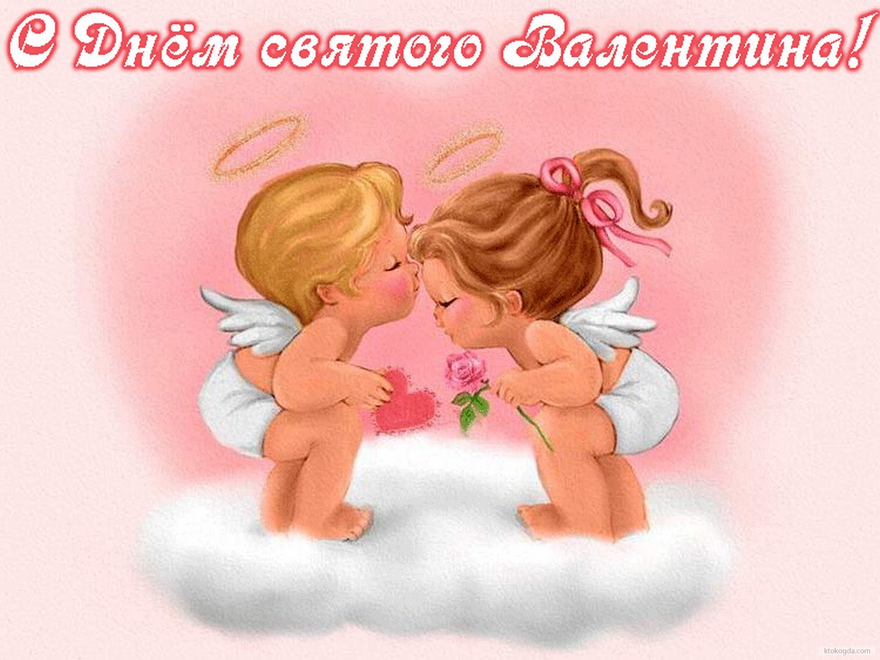 Открытка с Днем Святого Валентина, ангелочки