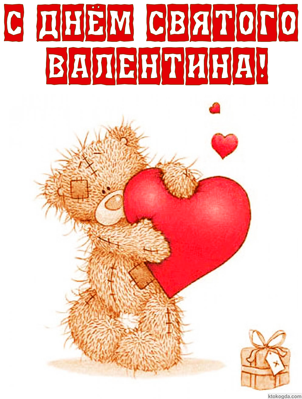 Открытка с Днем Святого Валентина, мишка с сердцем