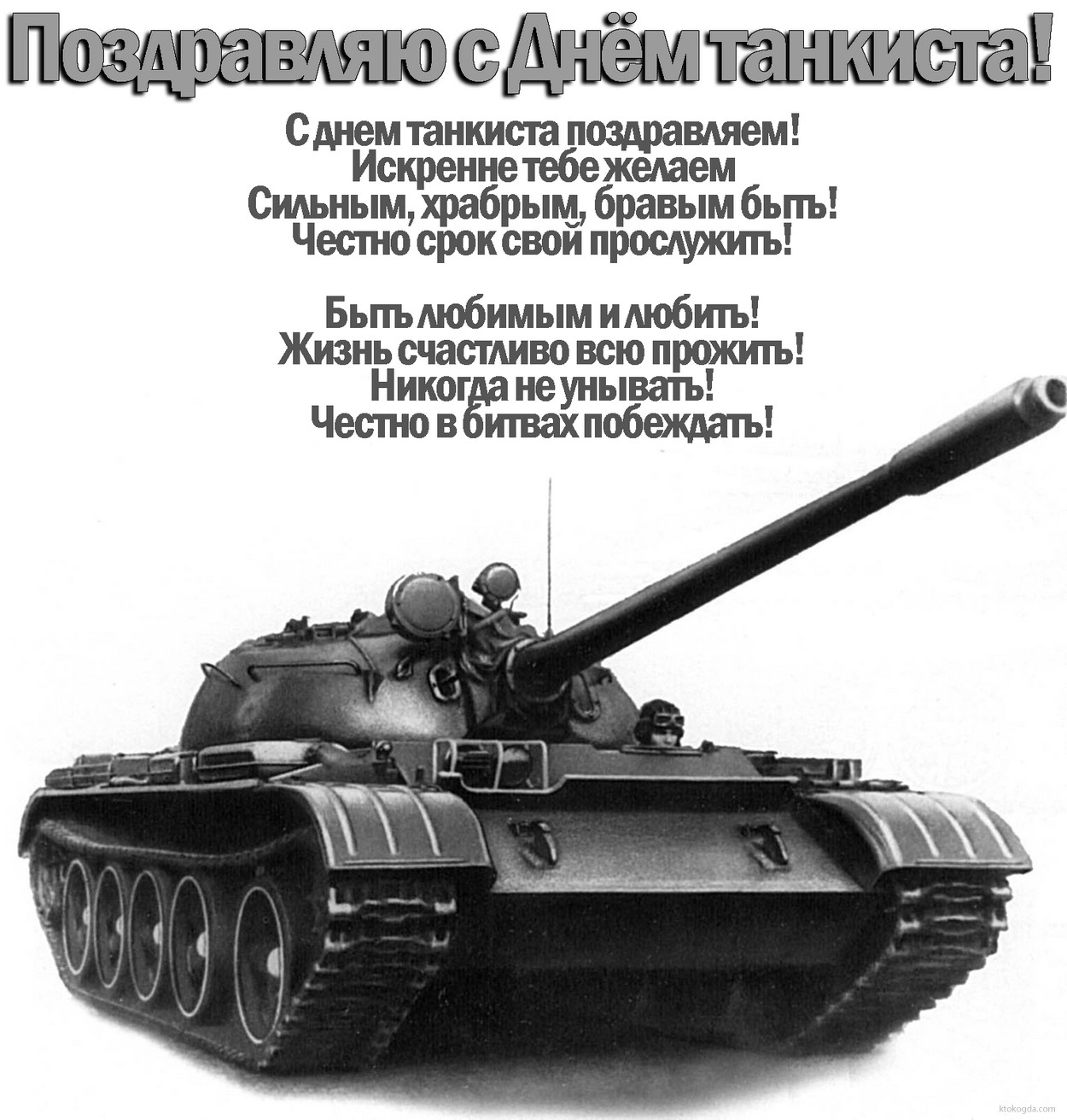 Открытка с Днем танкиста с стихотворением-пожеланием, танк