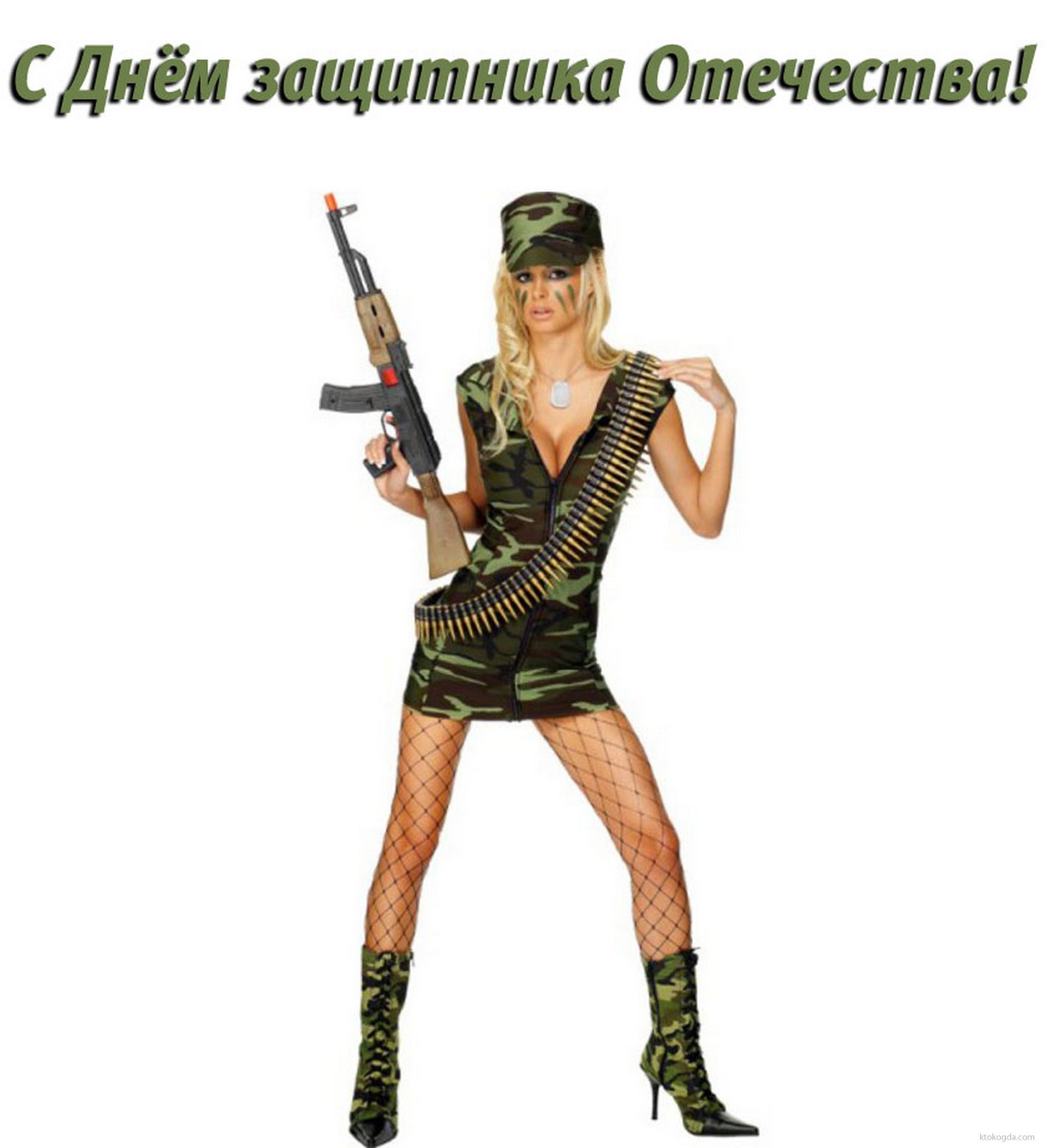 Открытка с Днем защитника Отечества, девушка в военной форме