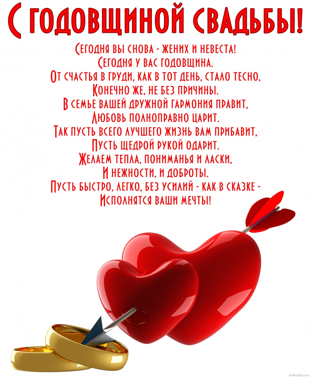 Открытка с годовщиной свадьбы с поздравлением-стихотворением