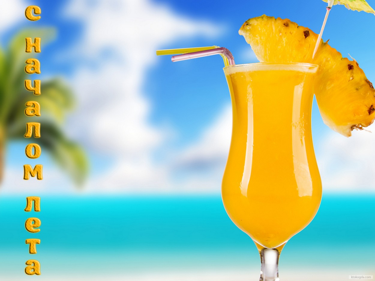 Открытка с началом лета, коктейль
