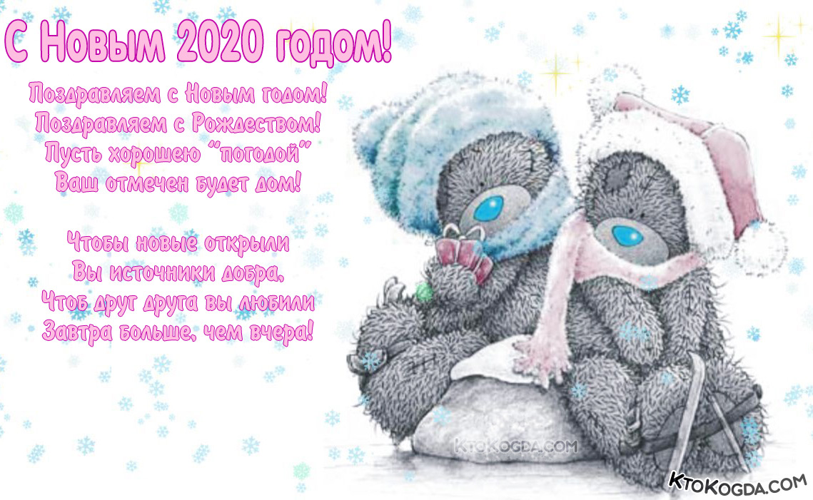 Открытка с Новым годом 2020 семейной паре, влюбленным, мишки