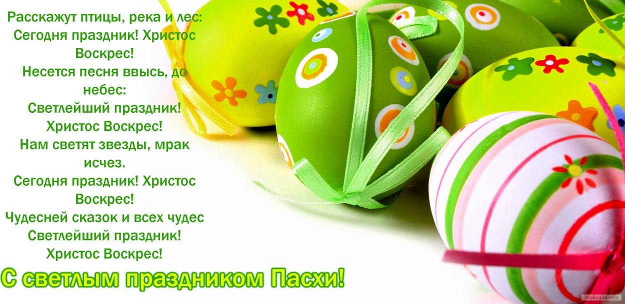Открытка с светлым праздником Пасхи с поздравлением-пожеланием, пасхальные яйца